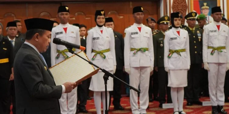 JAMBI – Gubernur Jambi Al Haris mengukuhkan 54 anggota Pasukan Pengibar Bendera Pusaka (Paskibraka) Provinsi Jambi Tahun 2025.