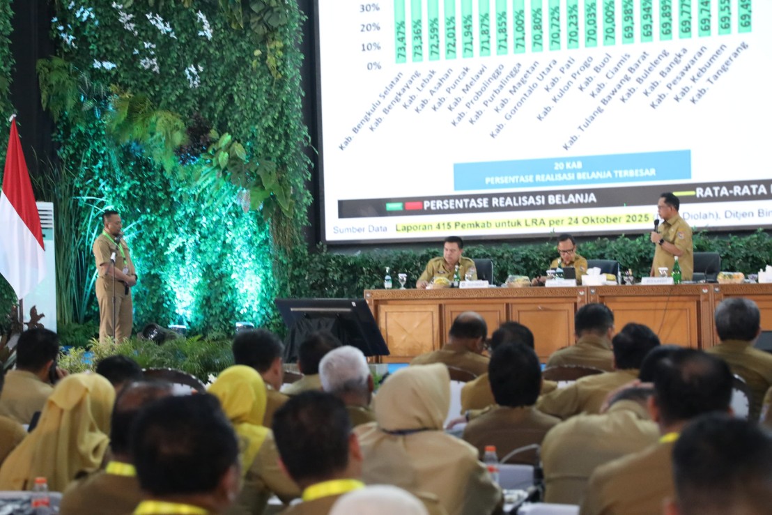 Ia mengingatkan, masih banyak daerah yang memiliki pendapatan tinggi namun tidak mampu membelanjakan secara optimal. Ia membeberkan realisasi APBD sejumlah daerah yang perlu diatensi, termasuk mengapresiasi daerah yang realisasinya baik.