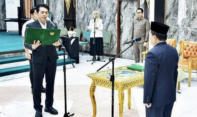 Batang Hari – Bupati Batang Hari, Mhd. Fadhil Arief, melantik dan mengambil sumpah jabatan Mula P. Rambe sebagai Penjabat Sekretaris Daerah (Pj. Sekda) Batang Hari tahun 2025, Rabu (6/8/2025), di Ruang Kaca Rumah Dinas Bupati.