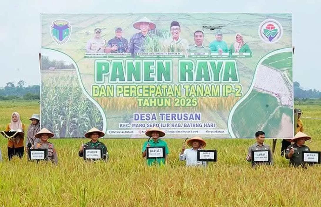 Batanghari – Bupati Batang Hari, Muhammad Fadhil Arief (MFA) menghadiri acara Panen Raya sekaligus percepatan tanam IP 2 tahun 2025.