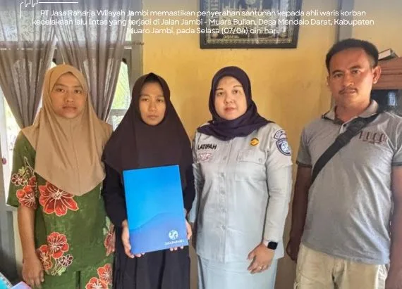 Baca Jambi – PT Jasa Raharja Wilayah Jambi menyerahkan santunan kepada ahli waris korban kecelakaan lalu lintas yang terjadi di Jalan Jambi–Muara Bulian, Desa Mendalo Darat, Kabupaten Muaro Jambi, Selasa (7/4/2026) dini hari.
