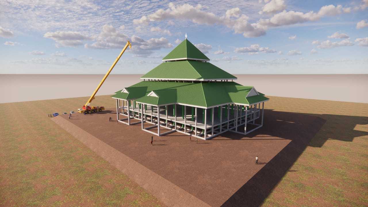 Batanghari – Pemerintah Kabupaten Batanghari sebelumnya telah menyelesaikan pembangunan tahap pertama Islamic Center, yang berfokus pada pendirian pondasi dasar hingga struktur tiang utama.Kini, pembangunan berlanjut ke tahap kedua yang difokuskan pada pengerjaan bangunan masjid dengan konsep arsitektur “tegak payung tanpa dinding”.