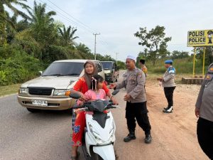Sarolangun,Bacajambi.id 01 Maret 2026 Dalam suasana penuh berkah bulan suci Ramadhan 1447 Hijriah, jajaran Polres Sarolangun kembali menunjukkan kepeduliannya kepada masyarakat melalui kegiatan sosial pembagian takjil. Kegiatan tersebut dilaksanakan pada Minggu (1/3/2026) sekira pukul 17.30 WIB di Jalan Lintas depan Mapolsek Pelawan Singkut, Kabupaten Sarolangun.